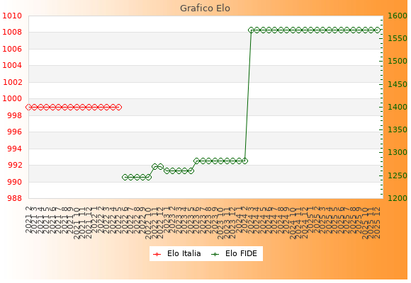 Elo FIDE: 1569    Migliore: 1569  (Dicembre 2025)    Peggiore: 1246  (Giugno 2022)