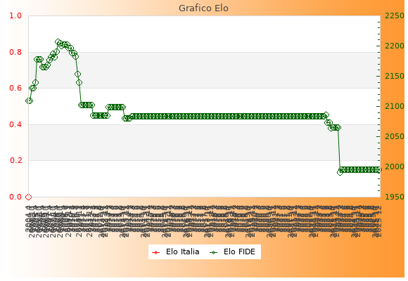 Elo FIDE: 1995    Migliore: 2207  (Luglio 2008)    Peggiore: 1991  (Febbraio 2024)