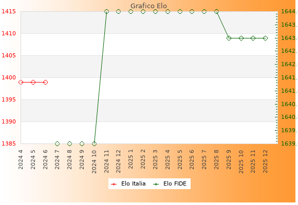 Elo FIDE: 1643    Migliore: 1644  (Agosto 2025)    Peggiore: 1639  (Luglio 2024)