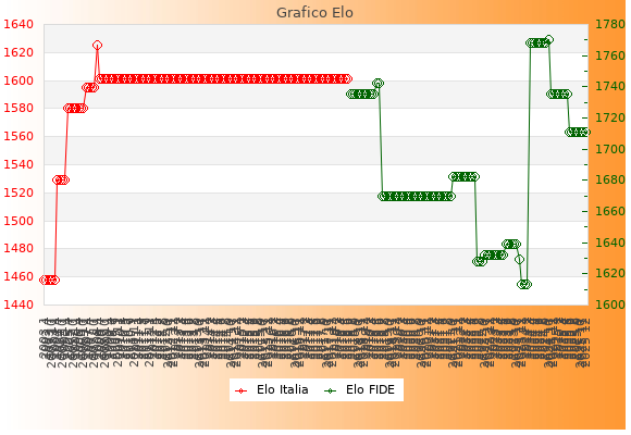 Elo FIDE: 1711    Migliore: 1770  (Ottobre 2024)    Peggiore: 1613  (Dicembre 2023)