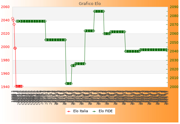 Elo FIDE: 2042    Migliore: 2085  (Giugno 2018)    Peggiore: 2004  (Gennaio 2014)