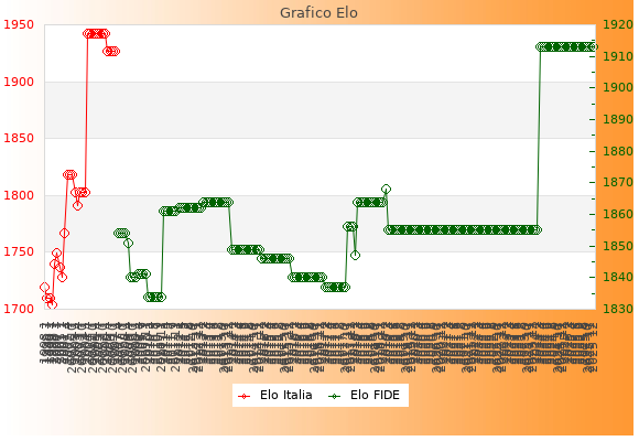Elo FIDE: 1913    Migliore: 1913  (Dicembre 2025)    Peggiore: 1834  (Gennaio 2010)