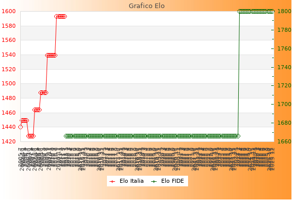 Elo FIDE: 1800    Migliore: 1800  (Dicembre 2025)    Peggiore: 1666  (Gennaio 2015)