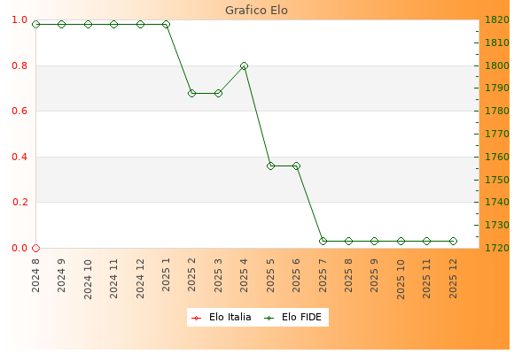 Elo FIDE: 1723    Migliore: 1818  (Gennaio 2025)    Peggiore: 1723  (Luglio 2025)