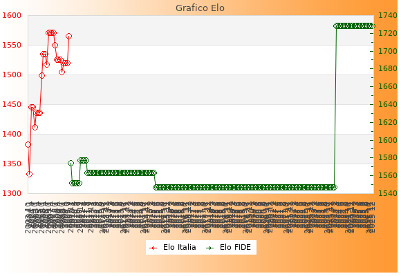 Elo FIDE: 1728    Migliore: 1728  (Dicembre 2025)    Peggiore: 1547  (Maggio 2015)