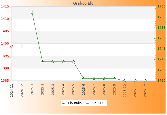 Elo FIDE: 1730    Migliore: 1762  (Gennaio 2025)    Peggiore: 1730  (Ottobre 2025)