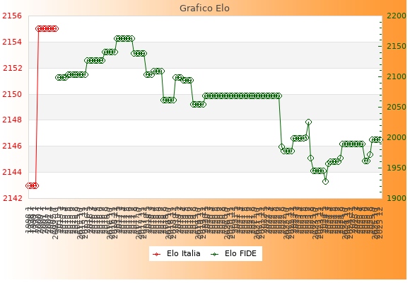 Elo FIDE: 1996    Migliore: 2163  (Luglio 2017)    Peggiore: 1928  (Febbraio 2024)