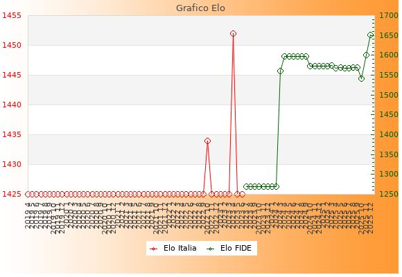 Elo FIDE: 1652    Migliore: 1652  (Dicembre 2025)    Peggiore: 1269  (Luglio 2023)