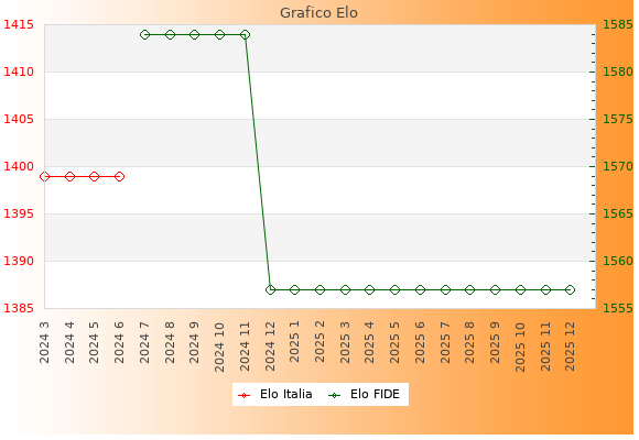 Elo FIDE: 1557    Migliore: 1584  (Novembre 2024)    Peggiore: 1557  (Dicembre 2024)