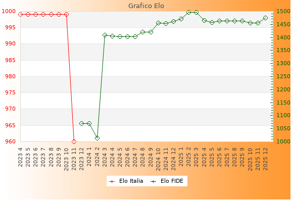 Elo Italia: 1431    Migliore: 1431  (Dicembre 2025)    Peggiore: 1431  (Ottobre 2004)