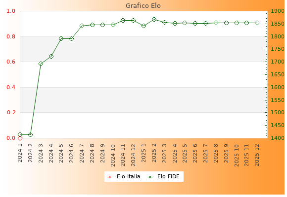 Elo FIDE: 1853    Migliore: 1868  (Febbraio 2025)    Peggiore: 1414  (Gennaio 2024)