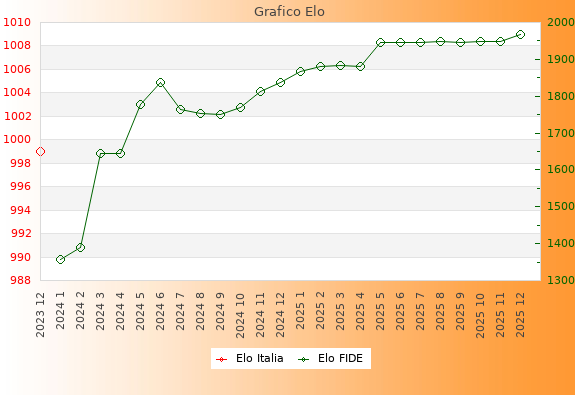 Elo FIDE: 1967    Migliore: 1967  (Dicembre 2025)    Peggiore: 1357  (Gennaio 2024)