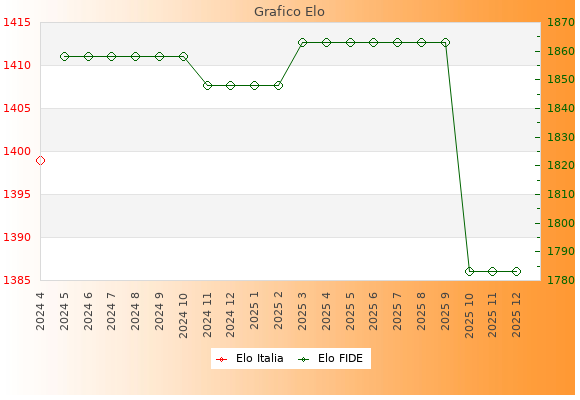 Elo FIDE: 1783    Migliore: 1863  (Settembre 2025)    Peggiore: 1783  (Ottobre 2025)
