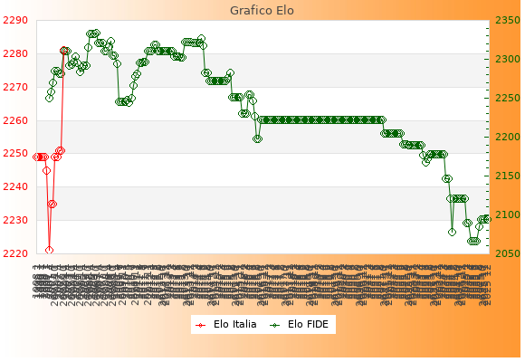 Elo FIDE: 2094    Migliore: 2334  (Ottobre 2006)    Peggiore: 2066  (Aprile 2025)