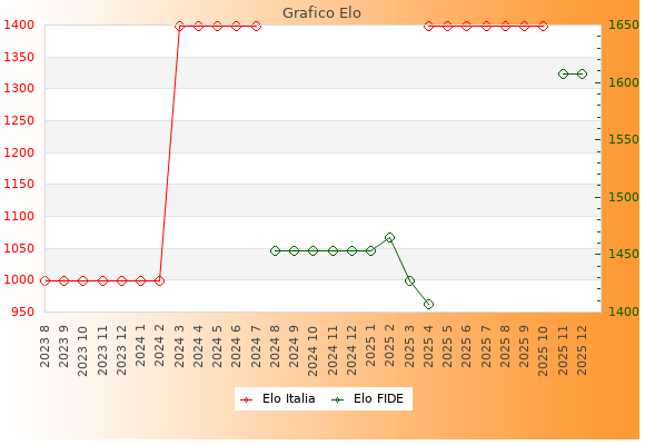 Elo FIDE: 1607    Migliore: 1607  (Dicembre 2025)    Peggiore: 1407  (Aprile 2025)