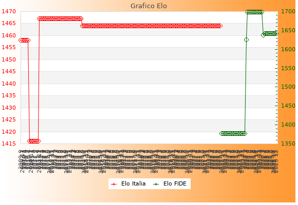 Elo FIDE: 1642    Migliore: 1698  (Febbraio 2025)    Peggiore: 1377  (Ottobre 2022)